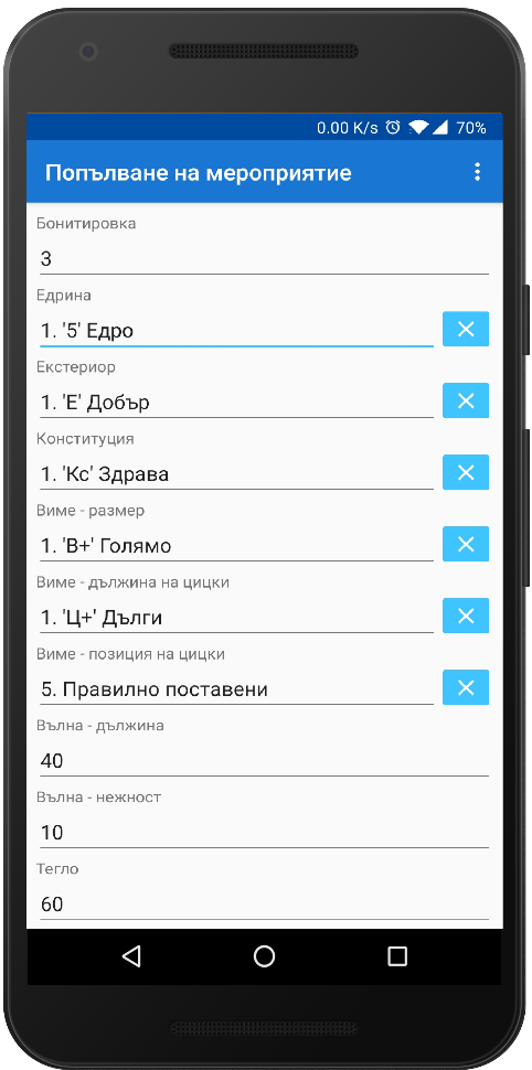 - въвеждане на произволен брой посещения на обекта, с групово въвеждане на продуктивни качества, бонитировки и плодовитост;